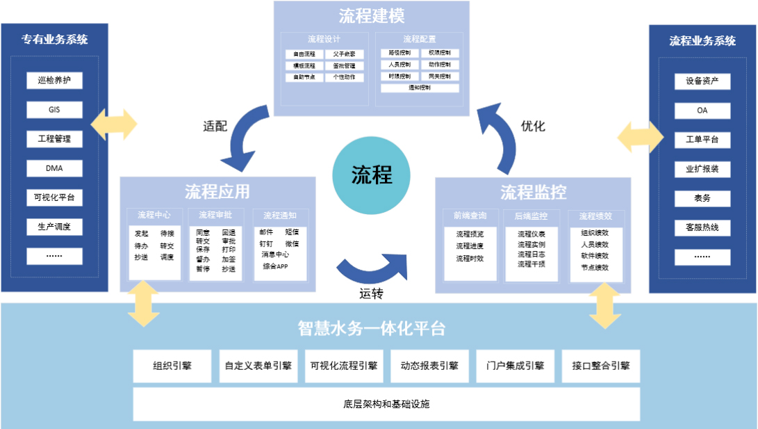 以流程为驱动,帮助水务企业构建一个闭环的水务信息化基础平台。