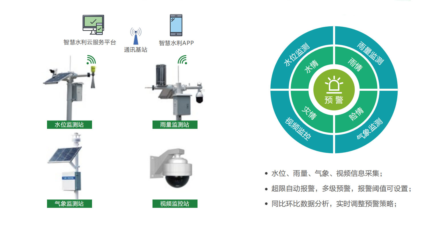 “四情”系统由水位监测站、雨量监测站、气象监测站、视频监控站组成,具有水位探测、降雨量统计、气象信息采集、视频监控等功能。将采集信息数据化、具象化,结合大数据分析,构建智慧水利四情信息平台,为防汛、救灾调度提供科学依据。落实四情预报、预警、预演、预案措施,完成补短板、堵漏洞、强弱项目标,全力预战各种灾害情况。